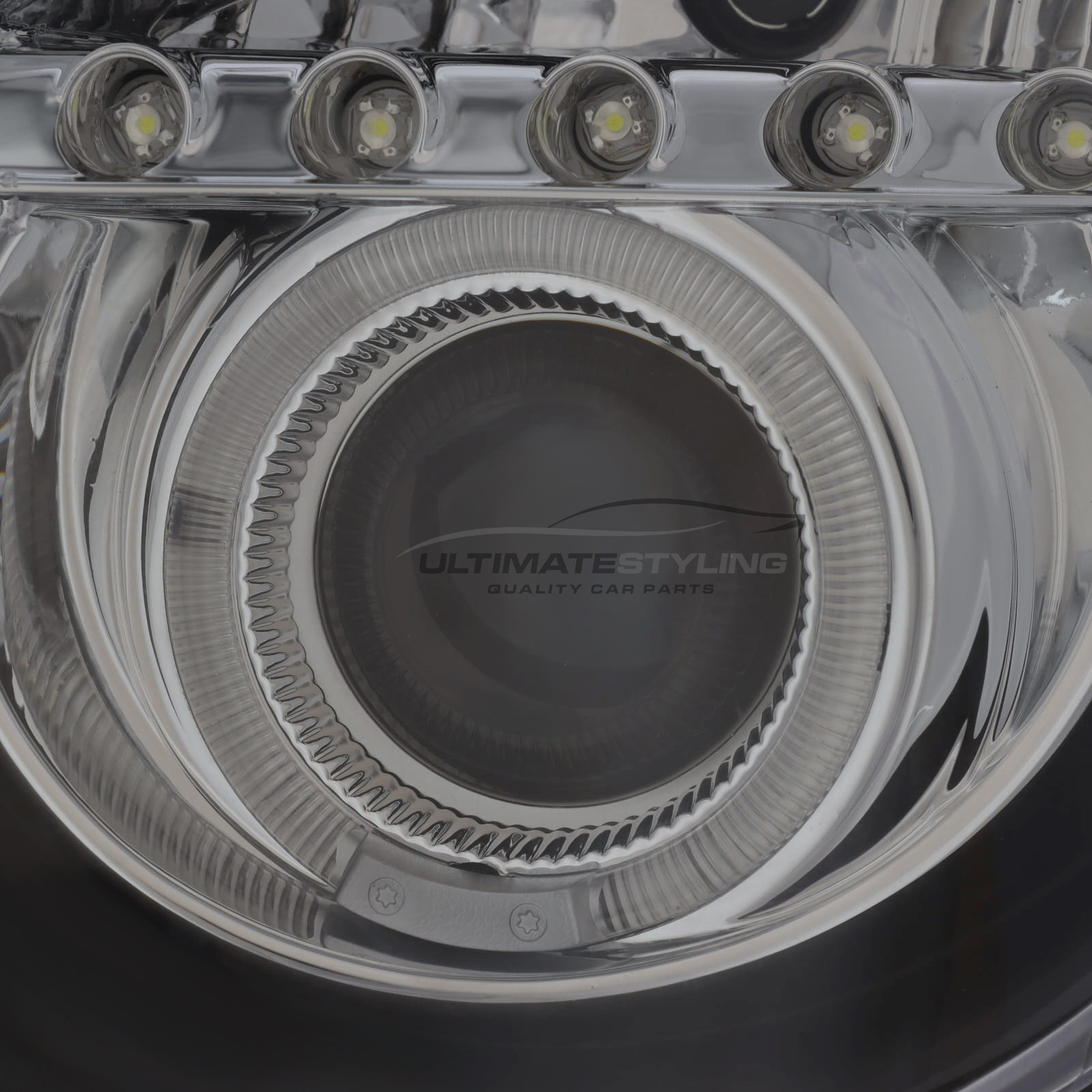 This LED DRL Xenon look projector headlight set comes complete with headlight bulbs, height adjusting motors and semi prewired.