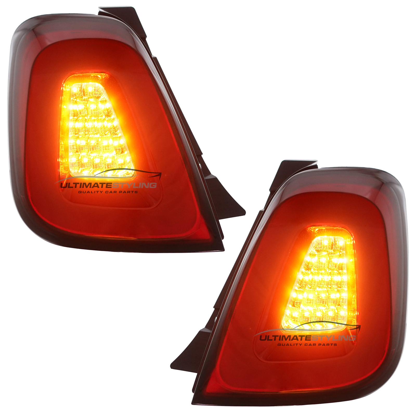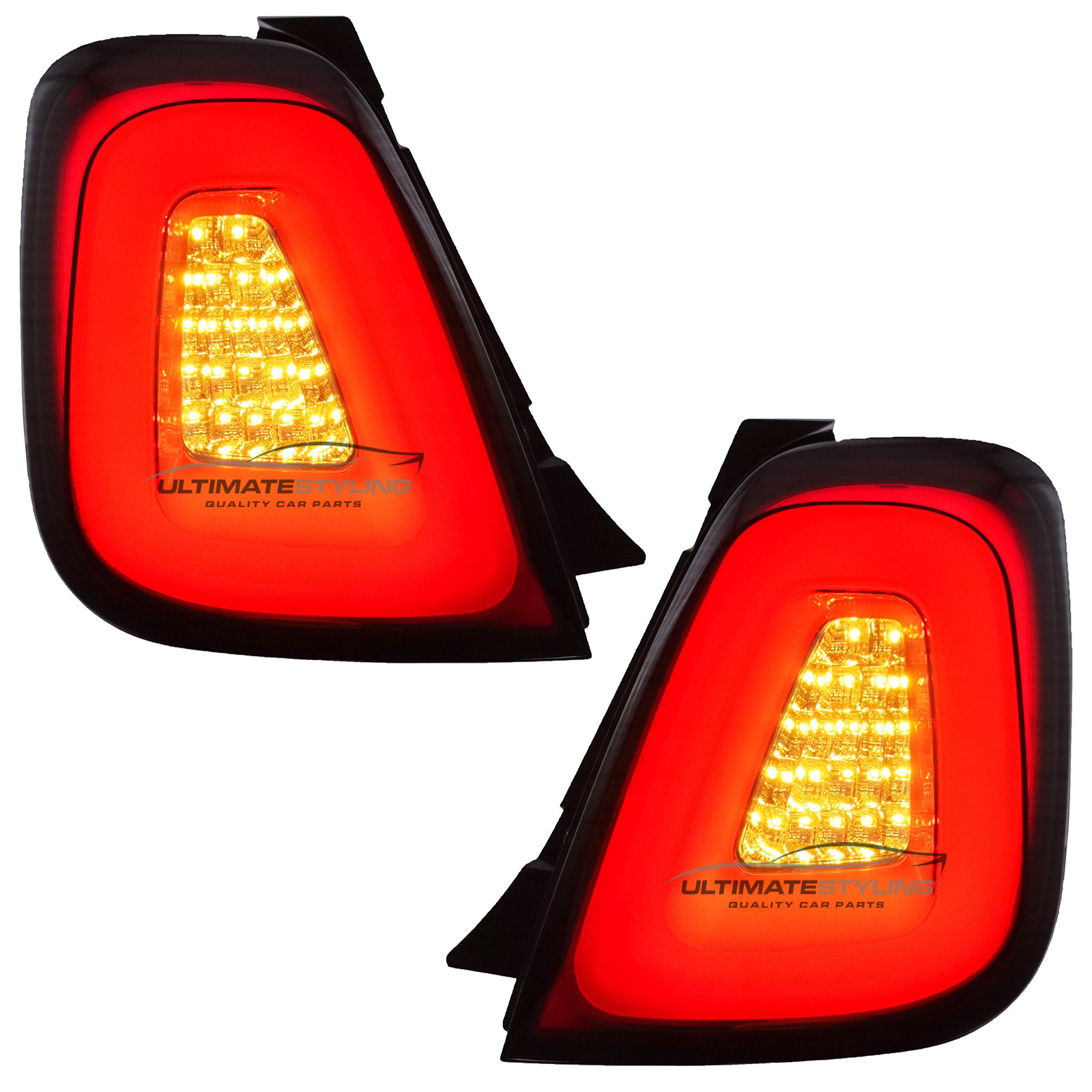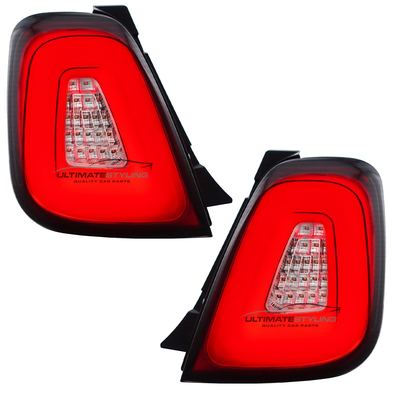 LED Style Performance Rear / Tail Lights for Abarth 595 / 695, Fiat 500 with Red & Clear lenses.