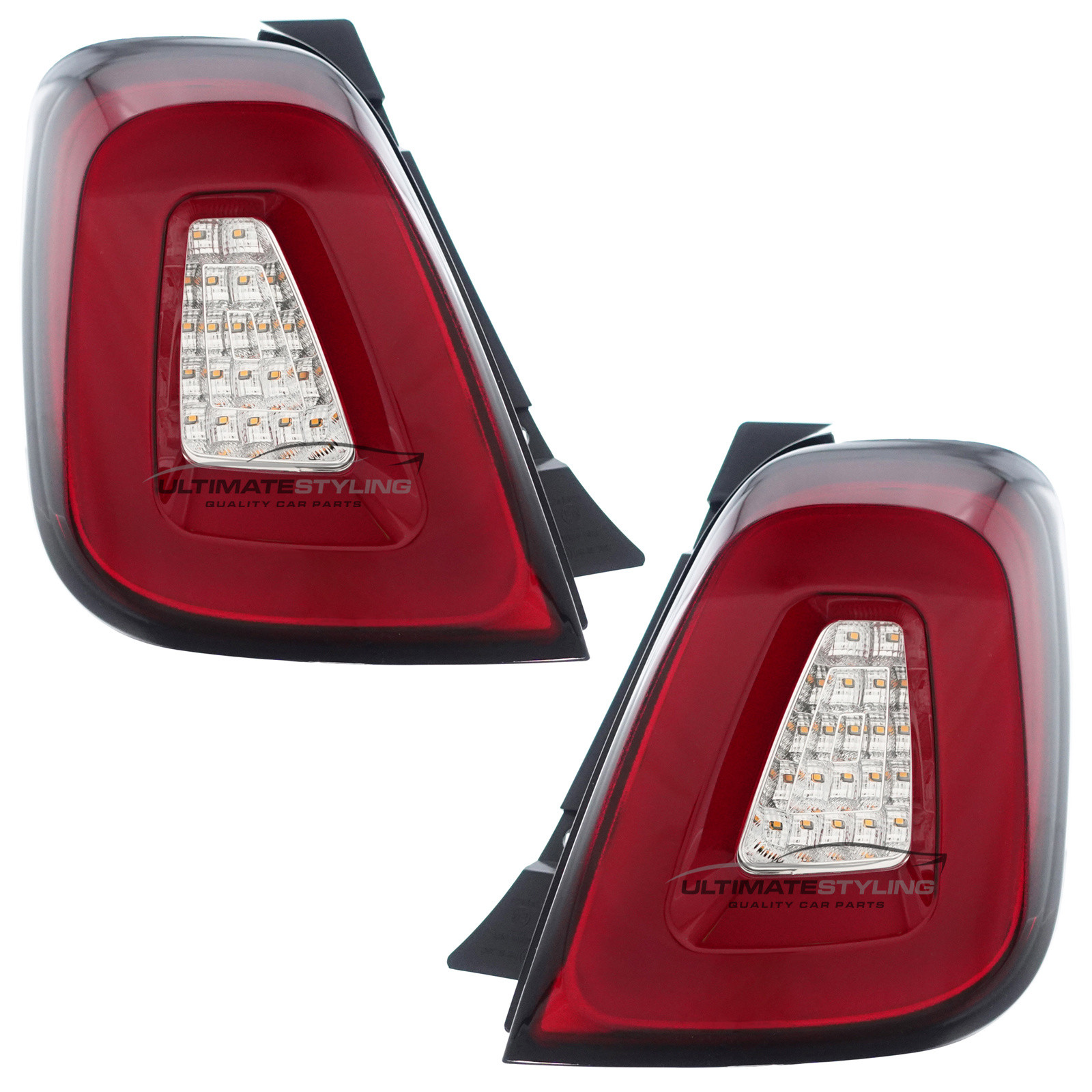 • Abarth 595 / 695, Fiat 500 Performance Rear / Tail Lights - LED Style - Red & Clear lens - Pair (LH + RH)