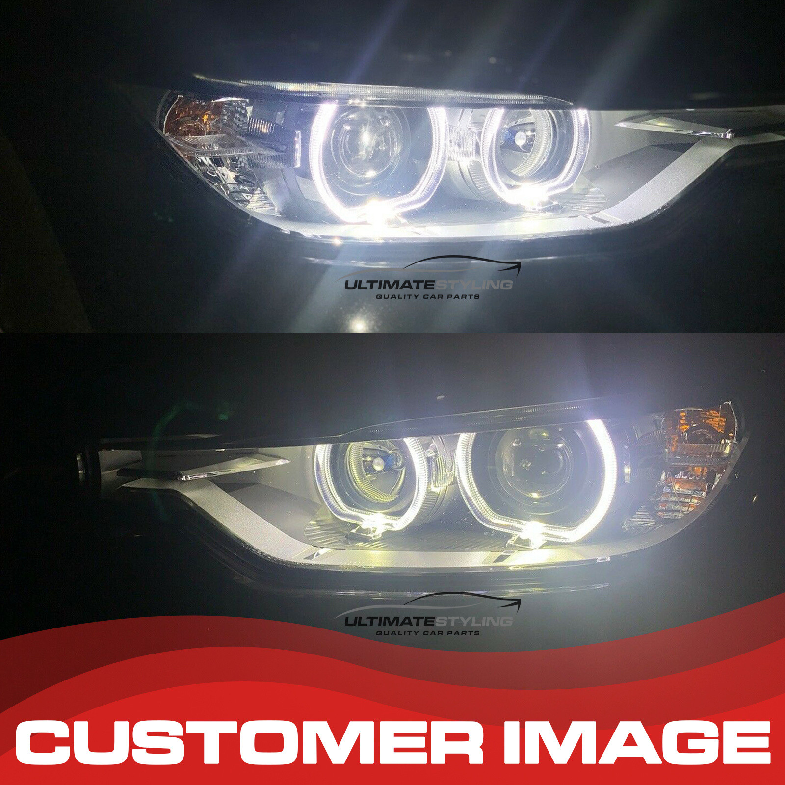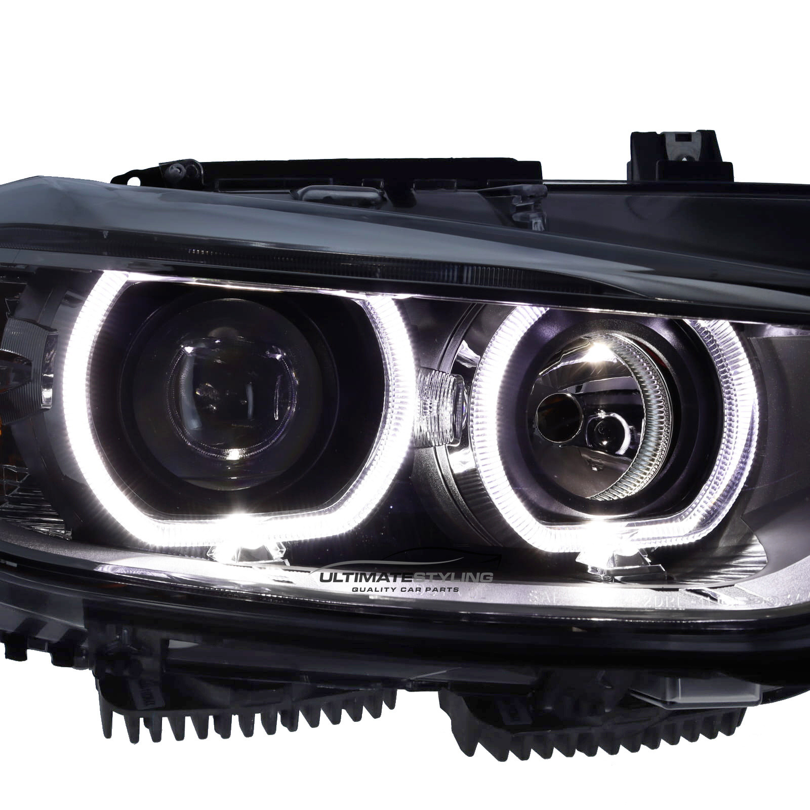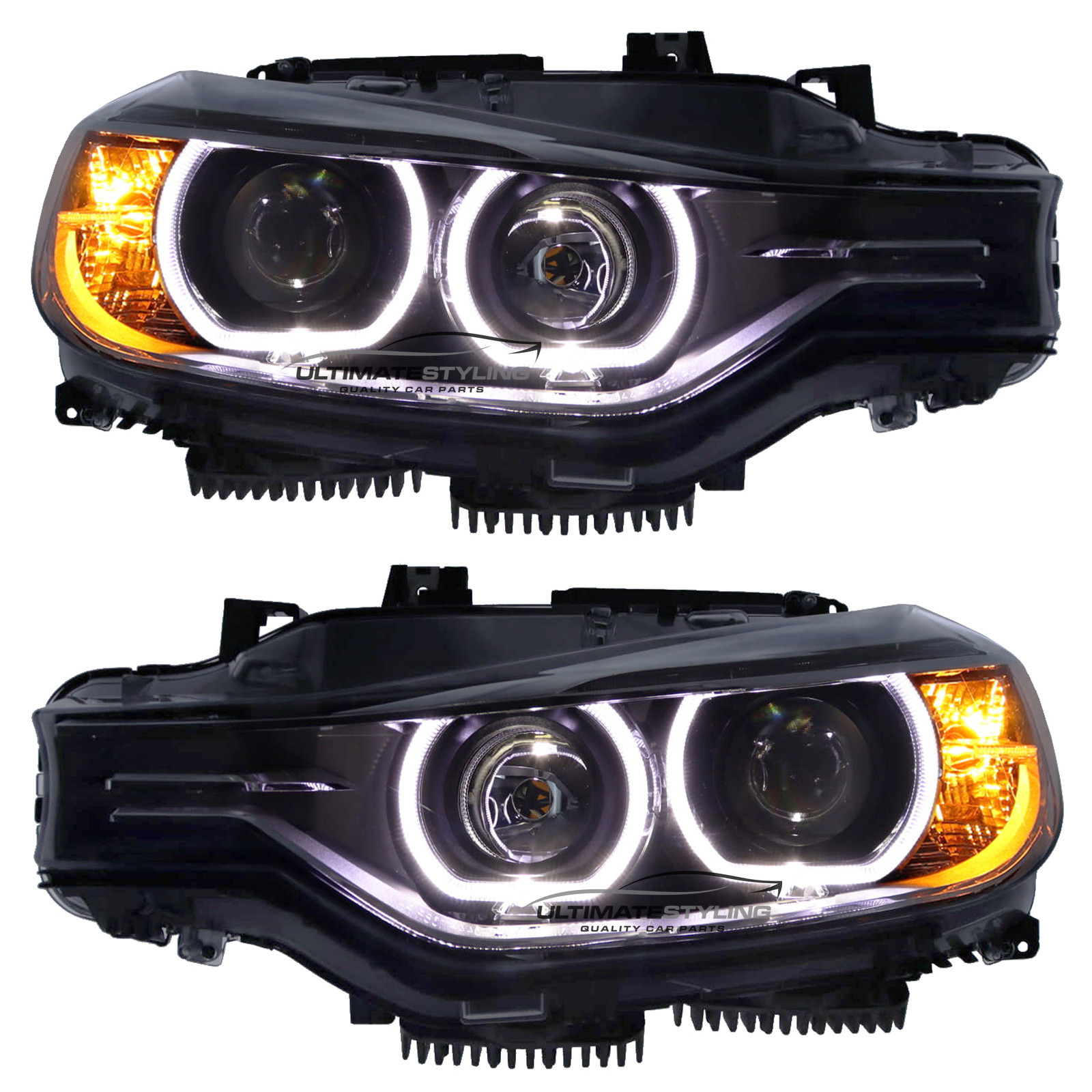 This is popular upgrade for most F30 and F31 3 series owners. This BMW F30 3 series LED DRL Angel eye headlight set is a perfect solution for replacing your standard headlights to LED Angel eyes. Giving the F30 a great facelifted younger look. Fully plug and play with no wiring modifications needed. Equipped with headlight beam height adjusting motors and built in LED driver units to ensure when fitted there are no bulb error warning lights on your dash. Our F30 3 series Angel eyes are fully road legal, E marked and MOT friendly. This design comprises of both a matt silver and chrome along with Anthracite grey/black design inner. Projector dipped beam giving these F30 headlights a Bi-Xenon look. The Angel eye rings have a flat bottom design in keeping with the latest BMW Angel eye designs, they are illuminated with white LED's. This Angel eye headlight set for the 3 series has an extremely high level of build quality, Made by Depo. This headlight set is only suitable for RHD right hand drive vehicles only.The product fits the following vehicles: