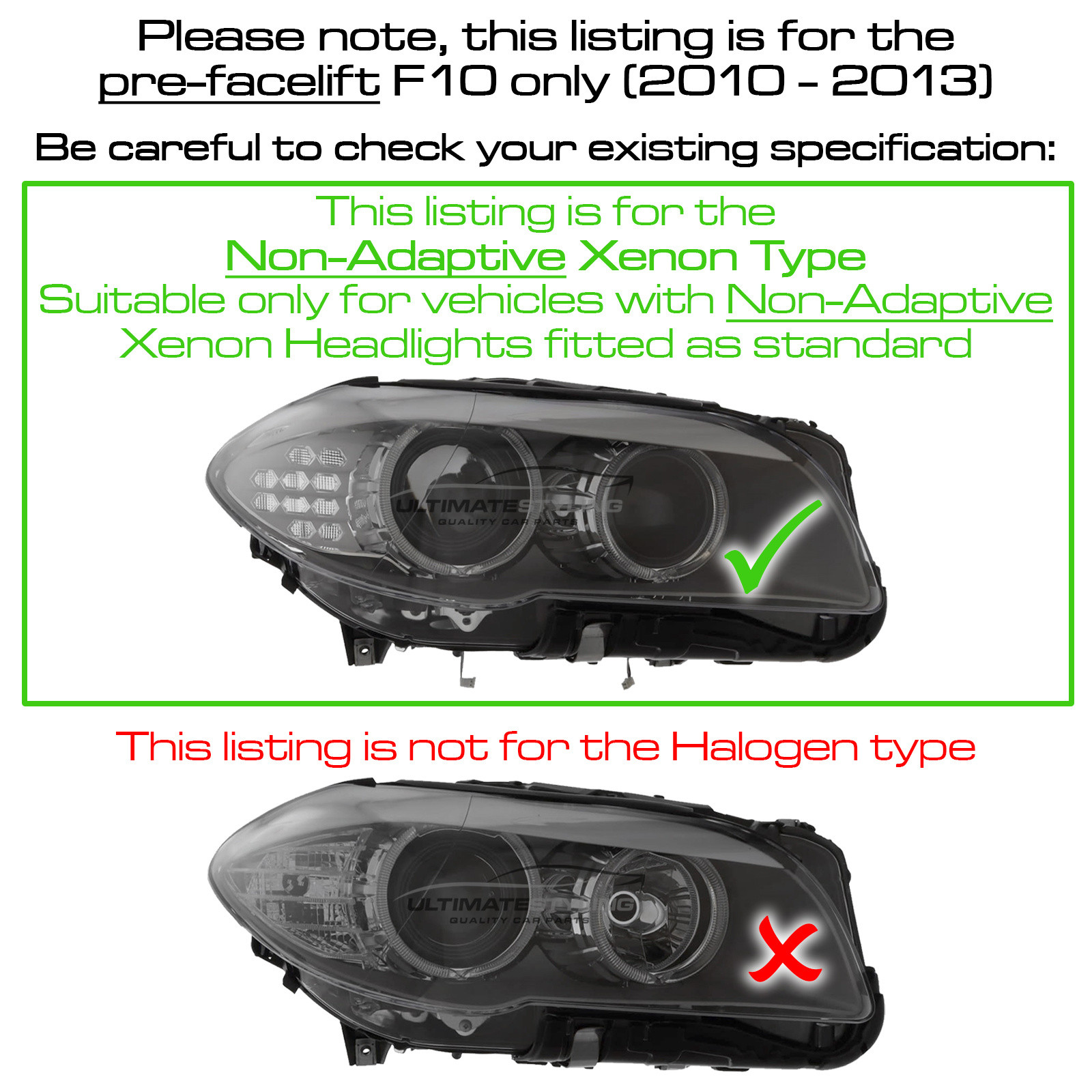 Drivers Side (RH) Xenon With LED Daytime Running Light Headlight / Headlamp for BMW 5 Series with Indicators, Electric adjustment and requires D1S LED Bulbs.