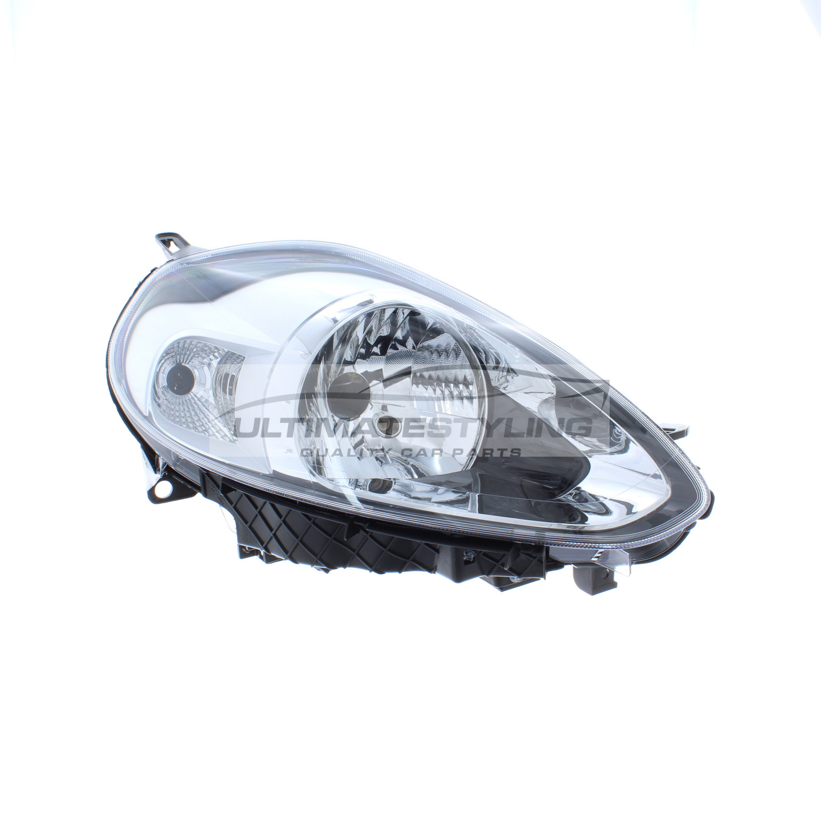 • Fiat Punto 2012-2018, Punto Evo 2010-2012 Halogen, Electric With Motor, Chrome Headlight / Headlamp Drivers Side (RH)