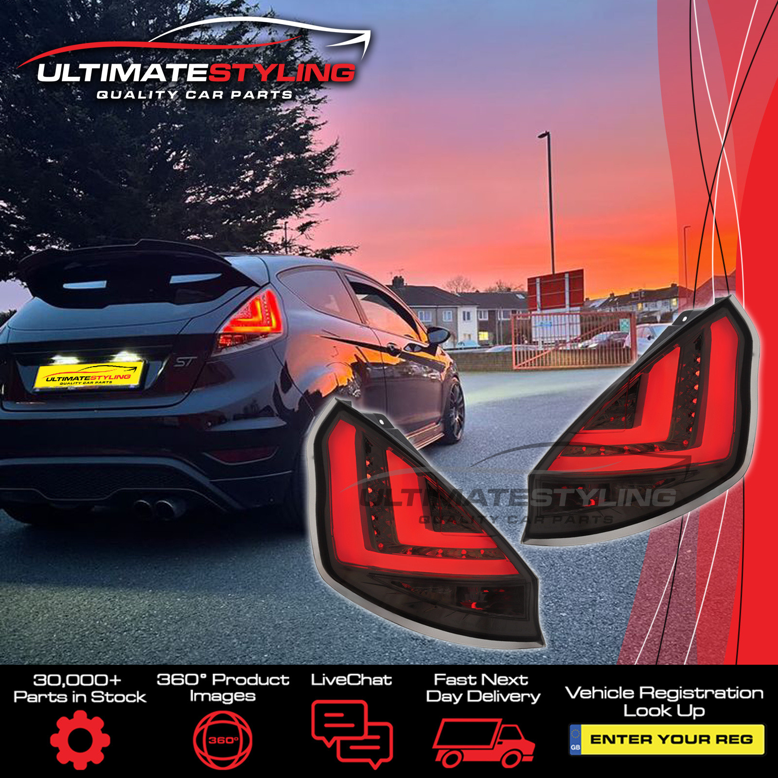 • Ford Fiesta MK7 2008-2013 Upgrade LED Light Bar Smoked Rear Tail Lights Pair