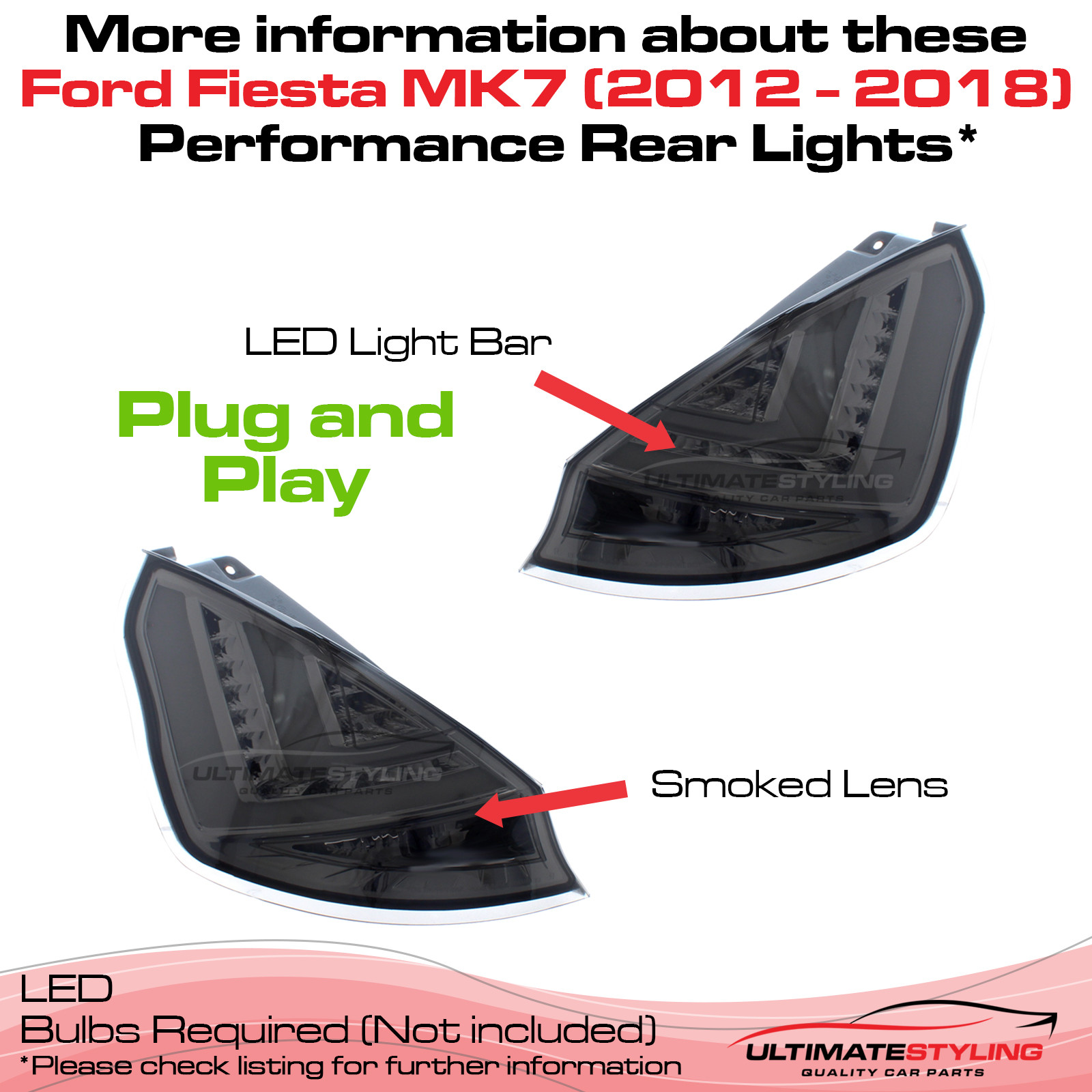 • Ford Fiesta Mk7 2012-2017 Upgrade LED Smoked Rear Tail Lights Pair