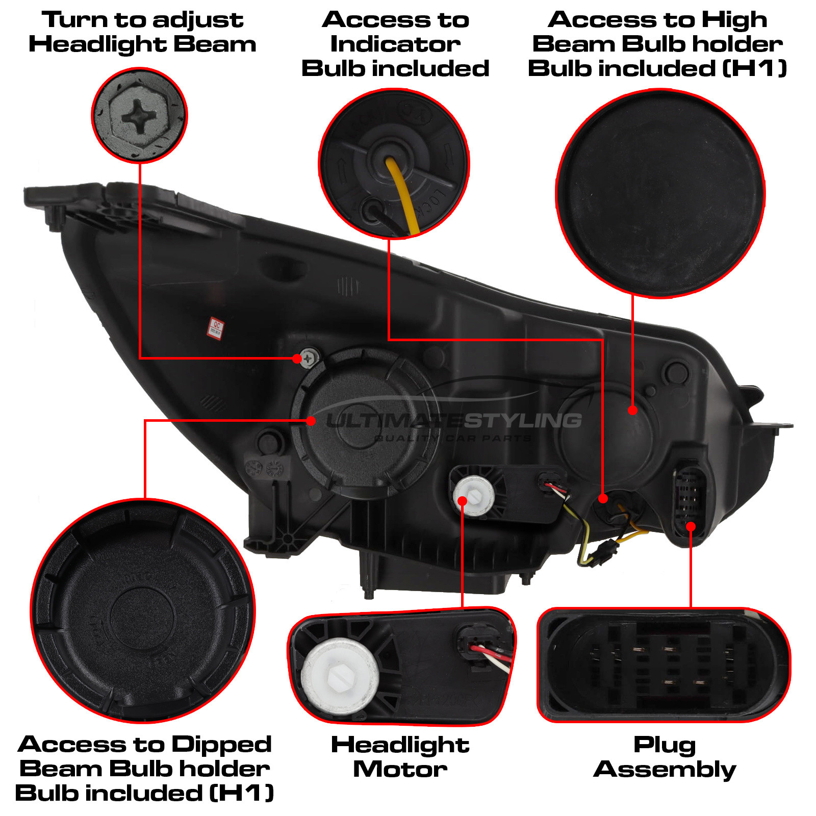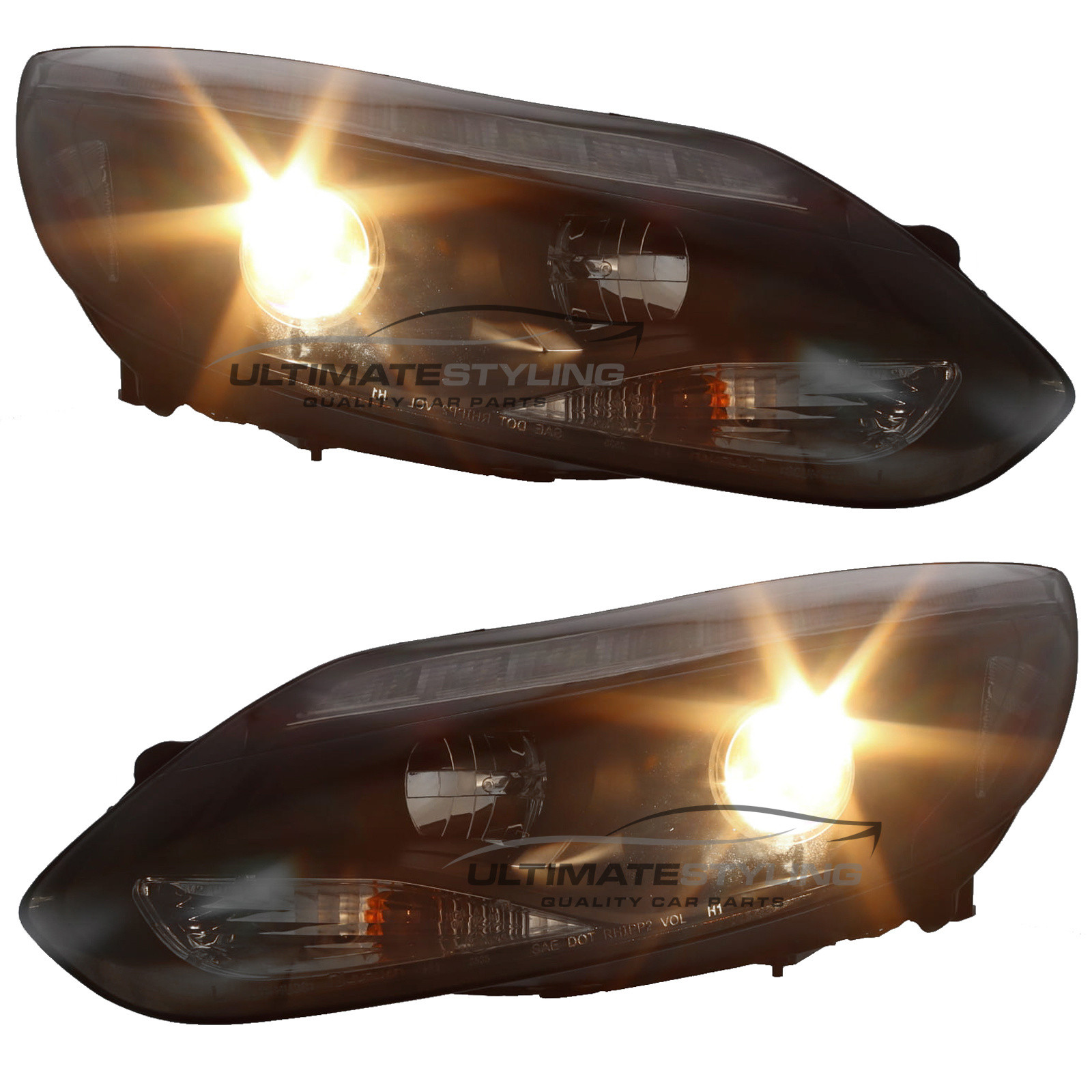 Halogen Performance Headlights for Ford Focus with Black Inner bezel. Electric adjusting.