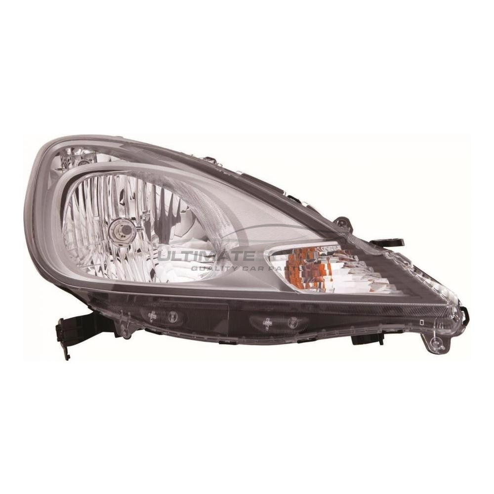 Drivers Side (RH) Halogen Headlight / Headlamp for Honda Jazz with Indicators, Electric adjustment and requires H4 WY21W W5W Bulbs.