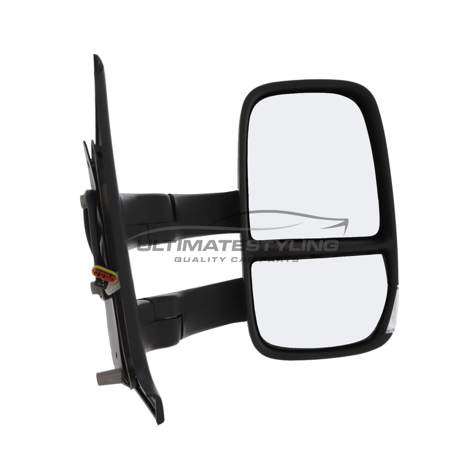 • Iveco Daily 2006-2014 Long Arm Wing Door Mirror - Electric - Clear Indicator - Heated - Convex Glass - Black Cover - Drivers Side Offside Right Hand