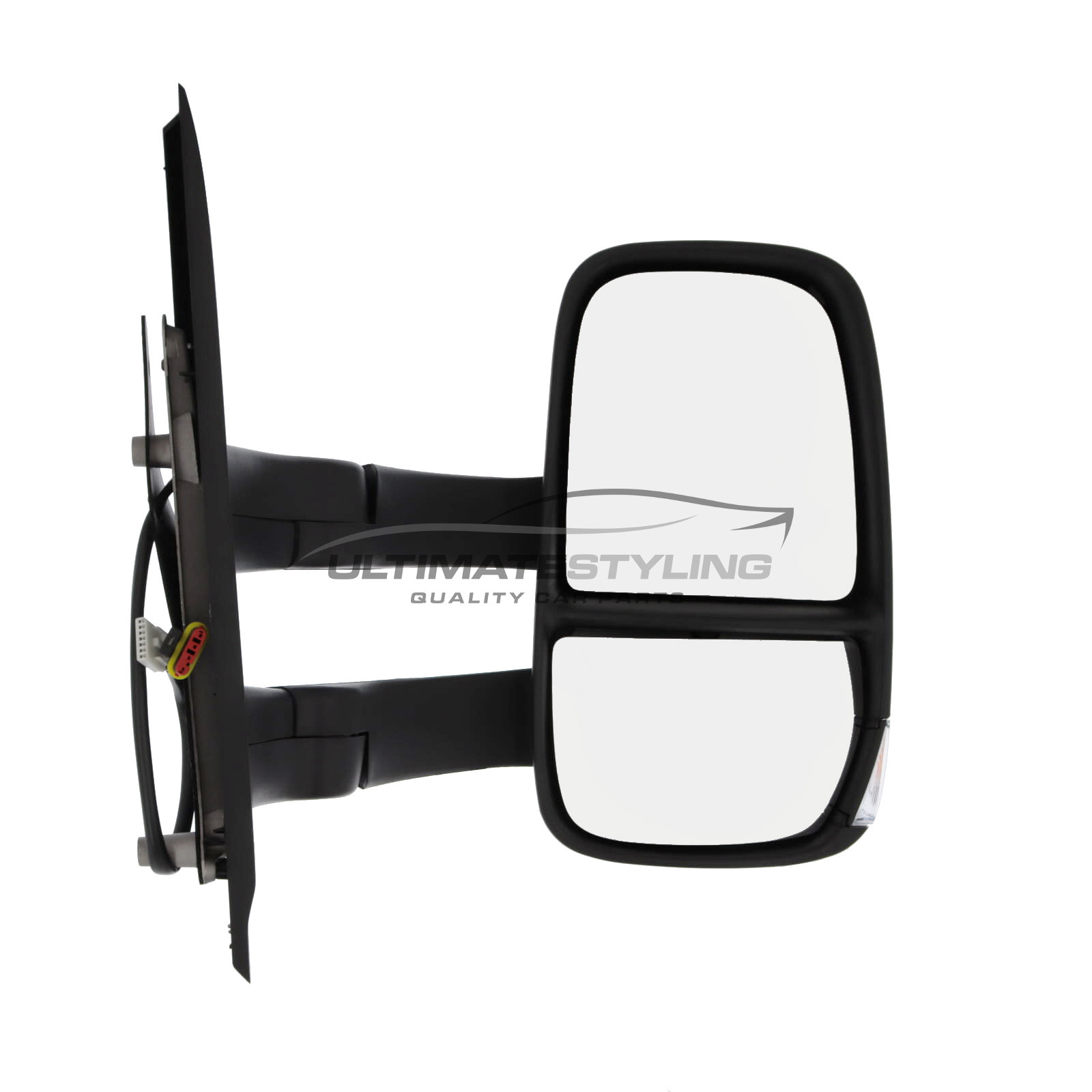 • Iveco Daily 2014-2025 Long Arm Wing Door Mirror - Electric - Clear Indicator - Heated - Convex Glass - Black Cover - Drivers Side Offside Right Hand