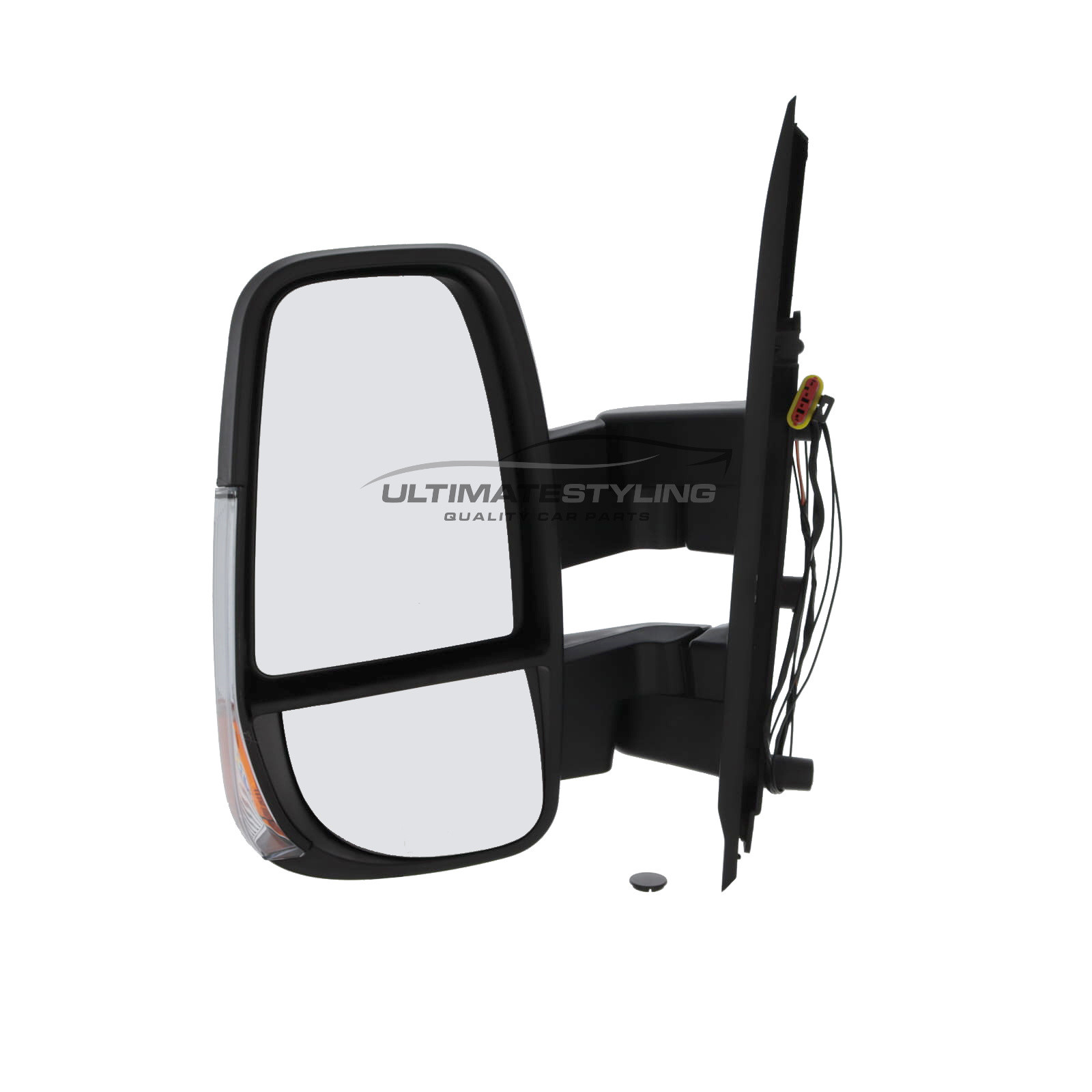 Iveco Daily 2014-2025 Short Arm Wing Door Mirror - Manual - Convex Glass - Clear Indicator - Black Cover - Passengers Side Nearside Left Hand