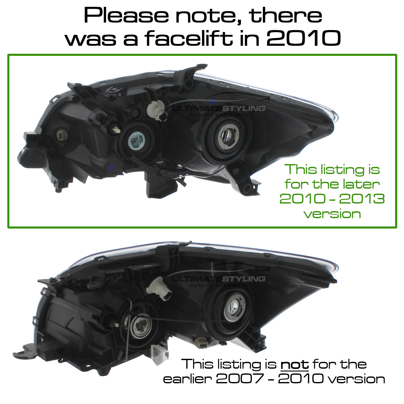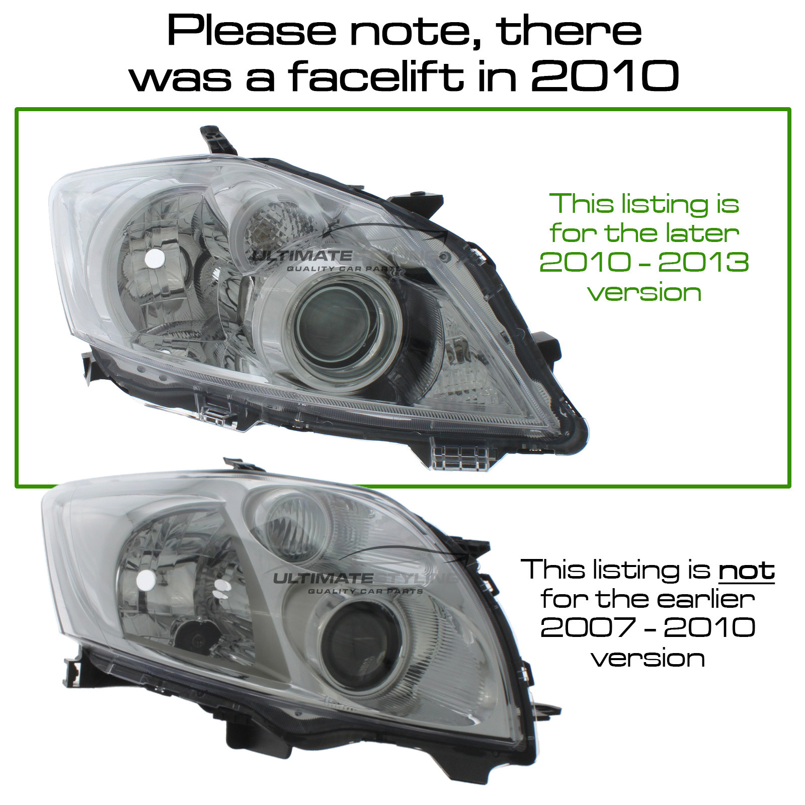 • Toyota Auris 2010-2013 Halogen, Electric Without Motor, Chrome Headlight / Headlamp Drivers Side (RH)