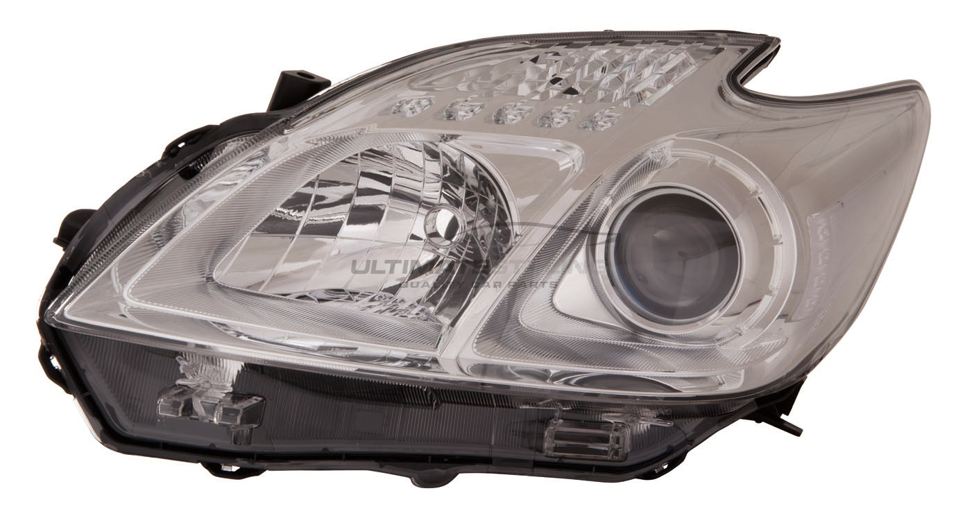 Toyota Prius 2012-2016 Halogen, Electric Without Motor, Chrome Headlight / Headlamp with Light Grey Tinted Surround Passengers Side (LH)