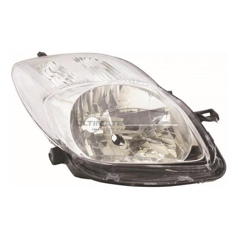 Drivers Side (RH) Halogen Headlight / Headlamp for Toyota Yaris with Indicators, Electric adjustment and requires H4 PY21W W5W Bulbs.