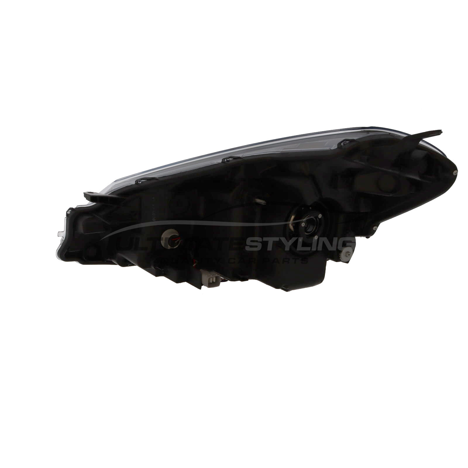 Drivers Side (RH) Halogen With LED Daytime Running Lamp Headlight / Headlamp for Toyota Yaris with Indicators, Electric adjustment and requires HIR2 WY21W LED Bulbs.