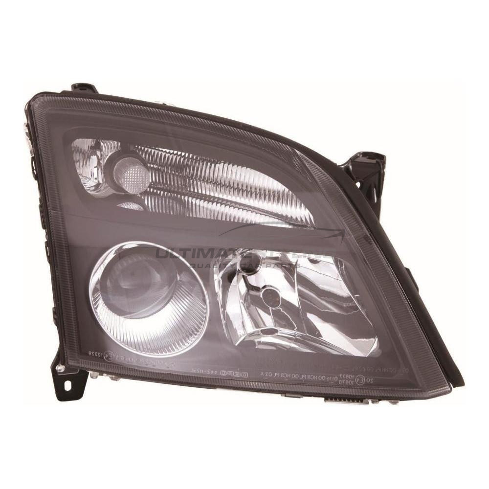 • Vauxhall Signum 2002-2005, Vectra 2002-2005 Halogen, Electric Without Motor, Black Headlight / Headlamp Drivers Side (RH)