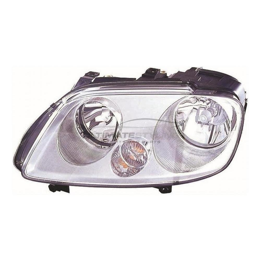 • VW Caddy 2004-2010, Touran 2003-2006 Halogen, Electric Without Motor, Chrome Headlight / Headlamp (3 Pod Type) Passengers Side (LH)