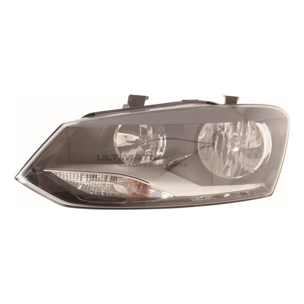 • VW Polo 2009-2014 Halogen, Electric With Motor, Black Headlight / Headlamp Passengers Side (LH)