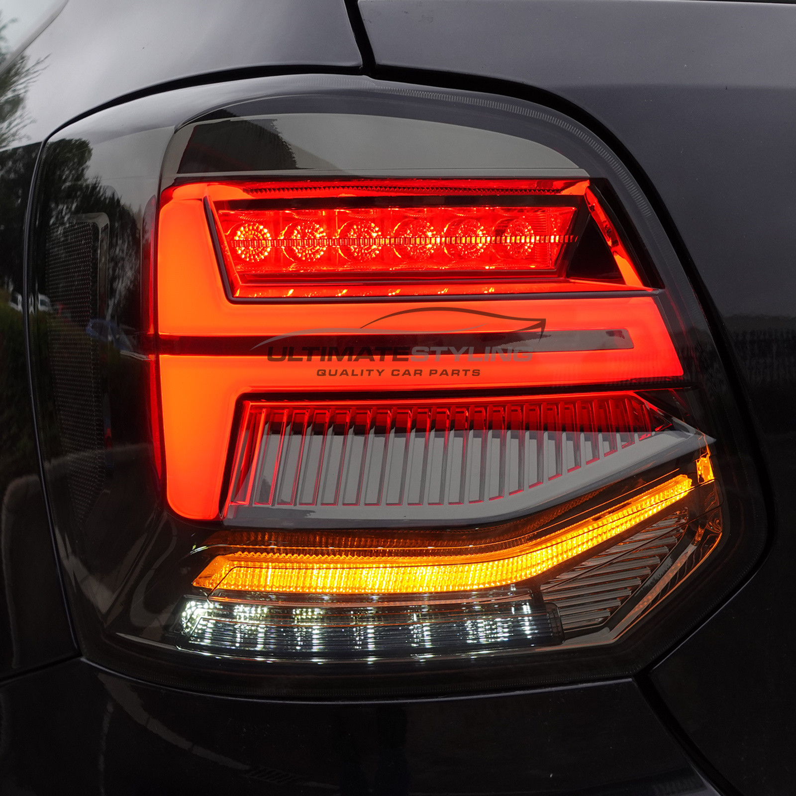 • VW Volkswagen Polo Mk5 6R 6C 2009-2018 Upgrade LED Smoked Lens Rear Tail Lights Dynamic Sequential Indicators Pair